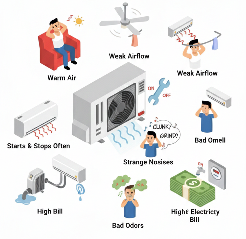 performance when your aircon is blowing warm air or cooling inefficiently due